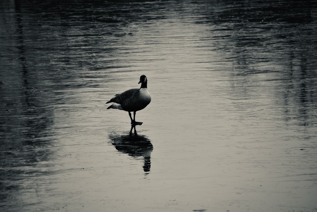 Hung out with the geese at Lake Anna in Barberton, OH. There was thin sheet of ice that made it look like some of the geese were walking on water. Used a silver tone filter in Apple Photos.