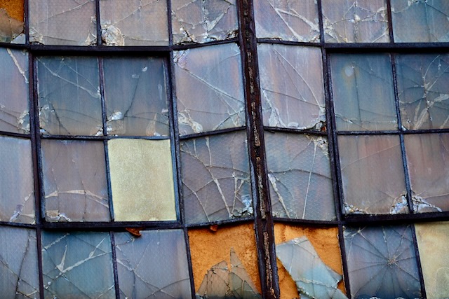 With this photo, I think it was the lined, logical patterns of the window panes combined with the erratic pattern of broken glass that caught my eye. Sometimes life is like that – erratic randomness in what should be orderly.
