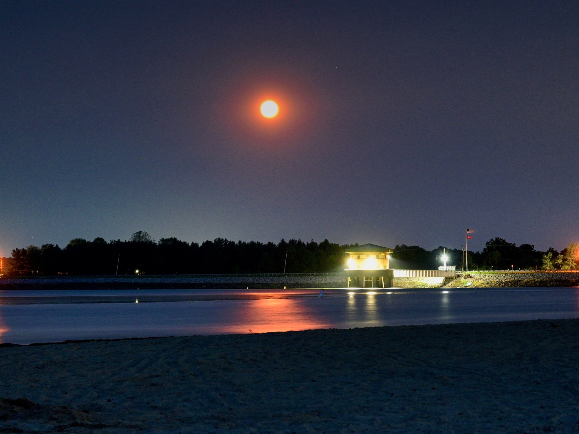There was a full, Strawberry Moon tonight over Mosquito Lake. About 9pm we realized that the moon was about to rise so we drove over to the beach at the State Park. At first, we didn’t see the moon at all. But eventually we saw the reddish moon coming out from the haze that has been in the sky all day.