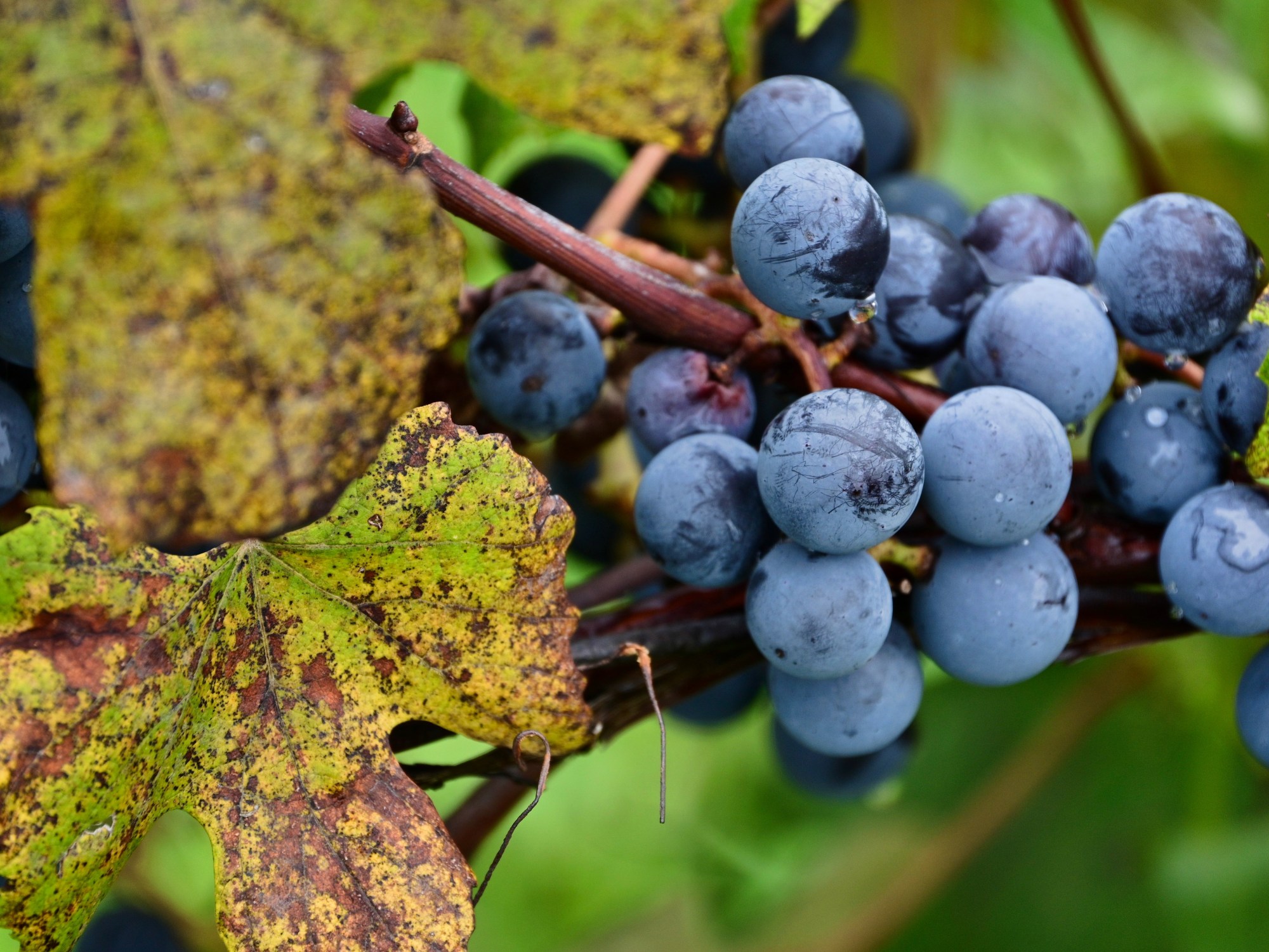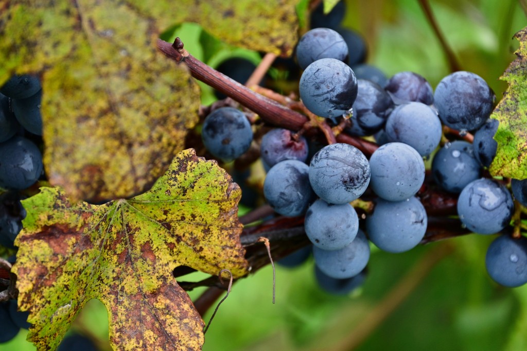 I liked the contrast between the ripe (Concord I think) grapes, and the foliage getting its Fall colors.