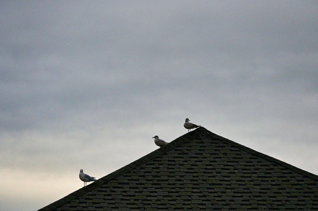 There were a ton of sea gulls at the park. I took some photos of them sitting, flying, flocking, etc. But I just liked the composition of this one. I think they were sitting on the roof of the welcome center.