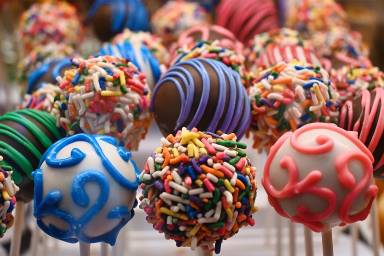 These particular cake pops were at Euro Sweets at West Side Market in Cleveland, OH. There are several bakeries there, but this one had some of the most photogenic treats. My Z30 battery was just about on its last electrons, but I was able to get just a few more shots to capture this one. I really love the colors and textures. It makes me hungry just looking at it.